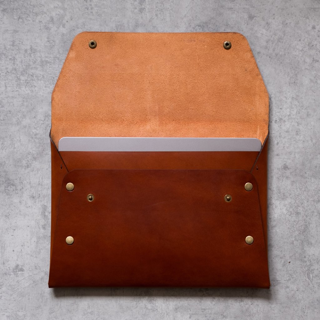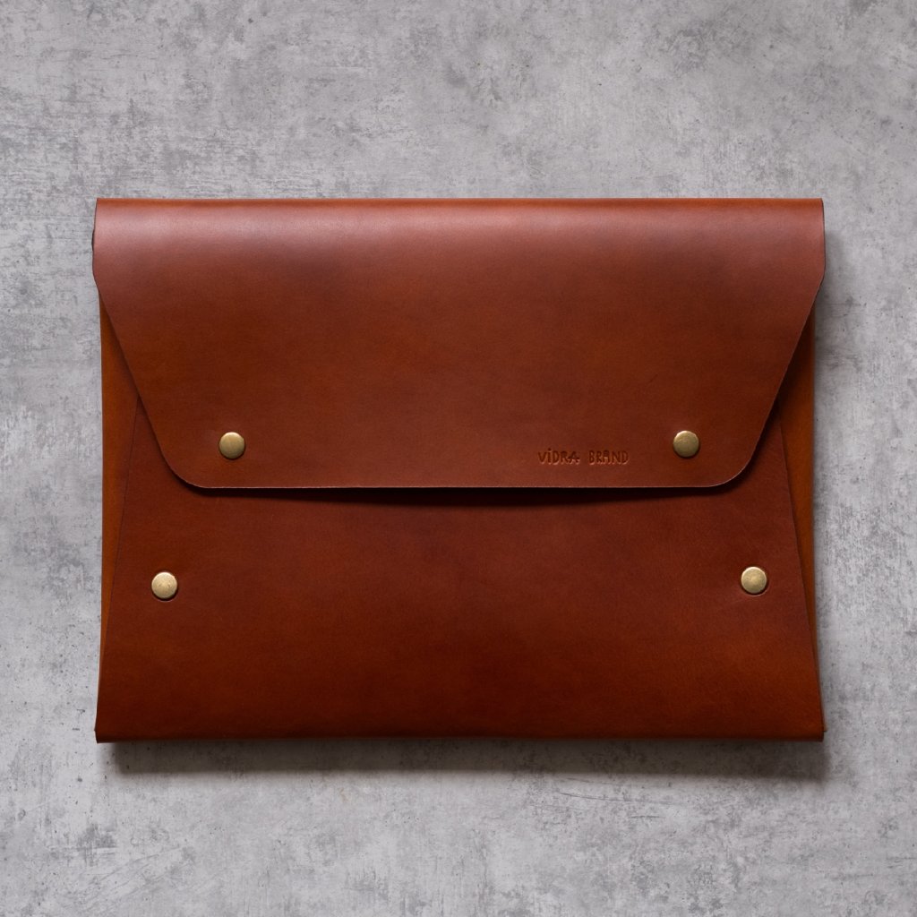 Kožený obal na notebook jsme vyrobili z prémiové hovězí kůže Vegetable Tanned Leather z Itálie.